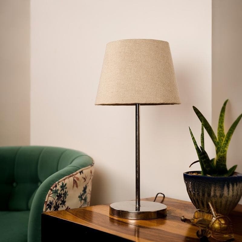Classy With Twist Metal Chrome Table Lamp - Beige